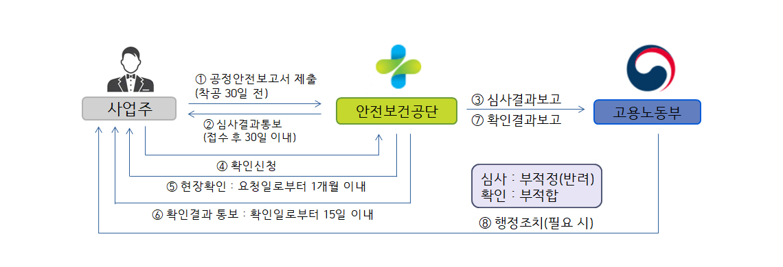 중대산업사고 발생 위험이 큰 유해 위험 설비를 보유한 사업장에 대하여 산업안전보건법 제 44조에 의거 공정안전자료 , 공정위험성평가, 안전운전계획 및 비상조치계획 수립 등에 관해 보고서를 작성 심사 및 확인을 통해 중대 산업사고를 예방